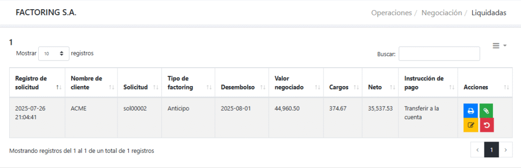 ¿Qué hacer luego de liquidar una solicitud de factoring?