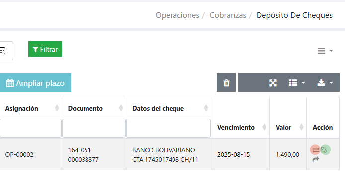 En la columna Acción, para cada cheque, tendrá disponibles las acciones posibles a ejecutar.